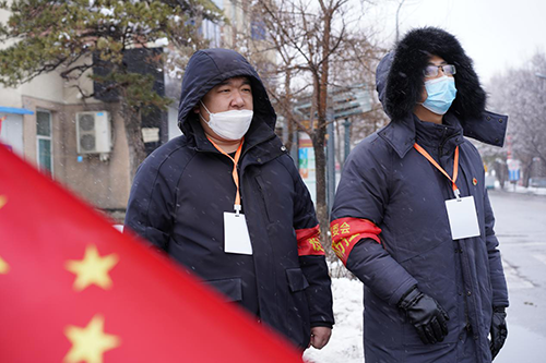 一場(chǎng)春雪,給這個(gè)被疫情所困擾的大地帶來(lái)了活力,一個(gè)個(gè)飽含“必贏”信心的字眼在雪中抒寫,冒雪堅(jiān)守抗“疫”一線的他們,依然是鏡頭下的主角。美人松下,小區(qū)隘口,身戴紅色袖標(biāo)的志愿者們,在雪的映襯下格外挺拔。